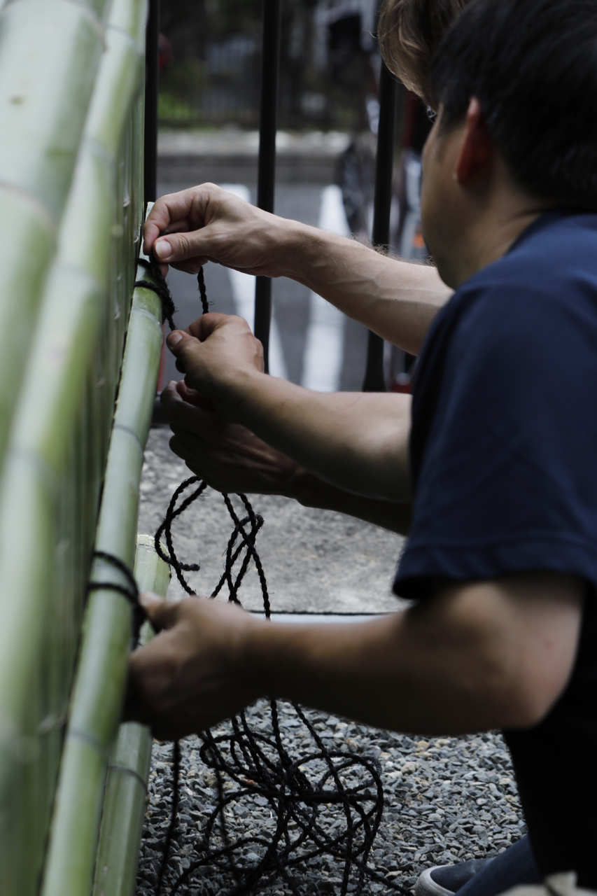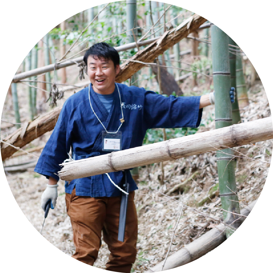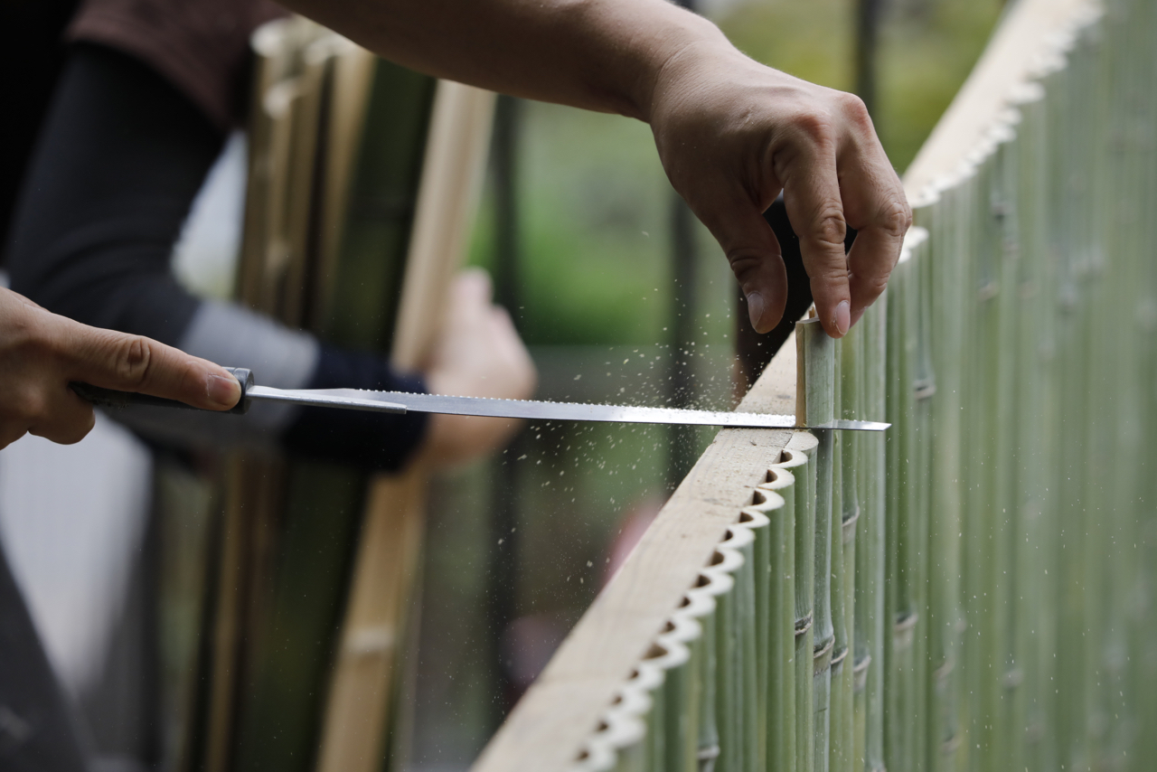 Bamboo, the material used for bamboo fences, is hard and has a glassy surface. By pretreating the bamboo and splitting, cutting, and bending it to the right size, craftspeople transform it into a durable yet flexible material that can be used to create bamboo fences in a variety of designs. During the experience, you can learn how to handle bamboo and its characteristics by making bamboo fences with craftspeople. By watching up close, you will be impressed by the craftspeople's quickness, delicacy, precision, power, and eyes for detail in their work. We invite you to experience the skills of Kyoto's master craftspeople in front of your eyes with your own body.