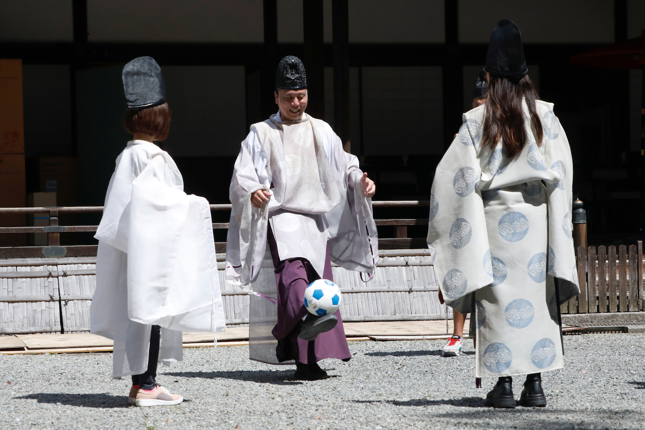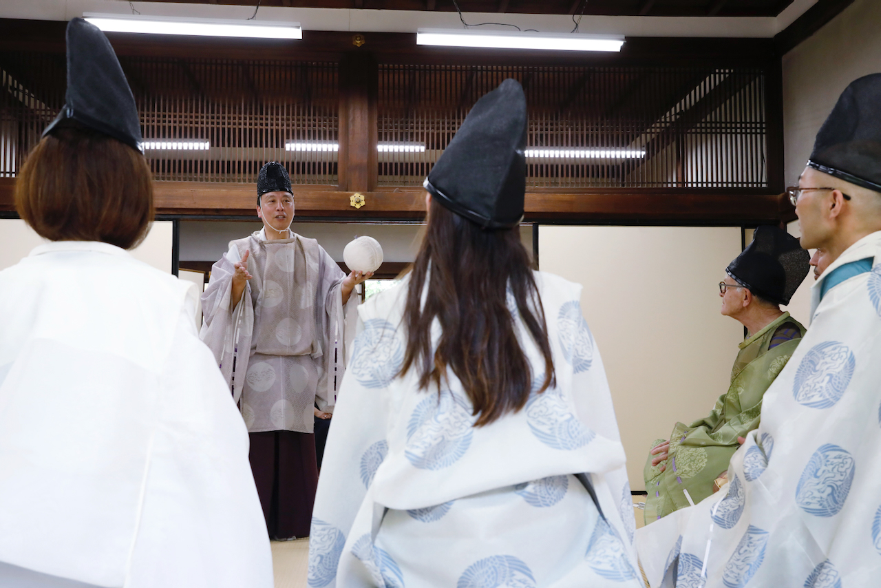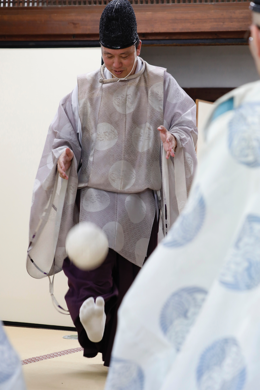 Following the kemari game, you will be guided by the shrine priests through the traditional process of folding the kariginu attire, completing the full ritual of preparation and participation. This final step allows you to appreciate the care and respect given to these ceremonial garments.