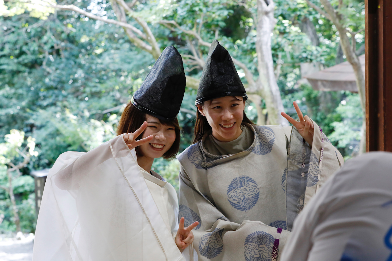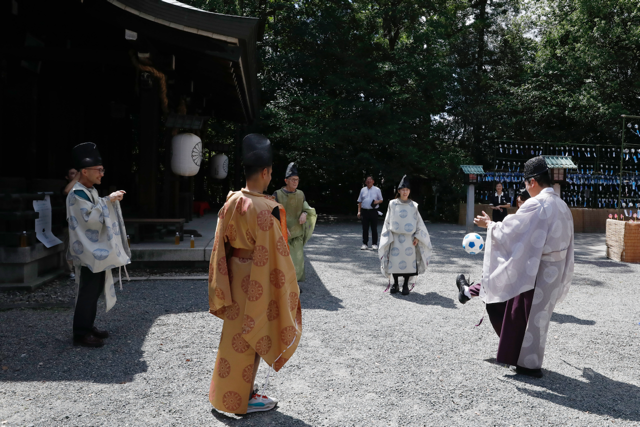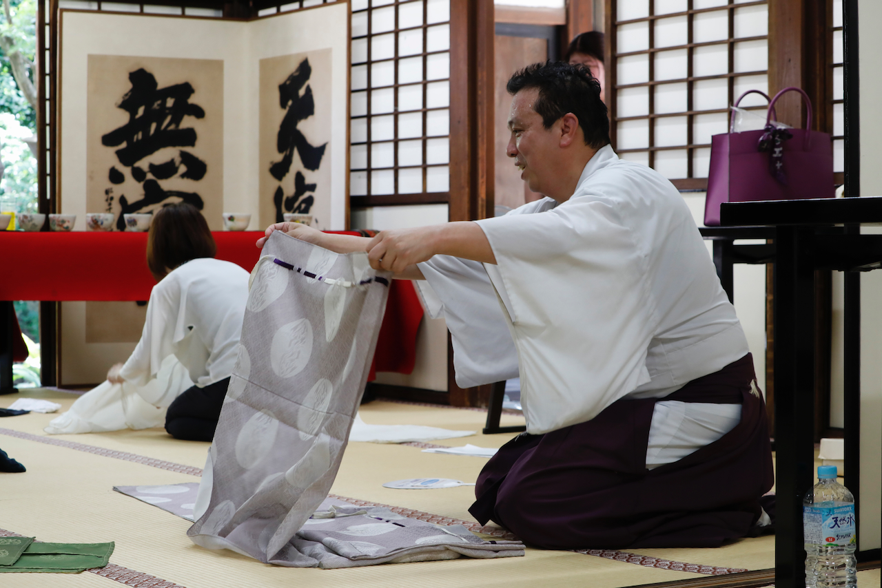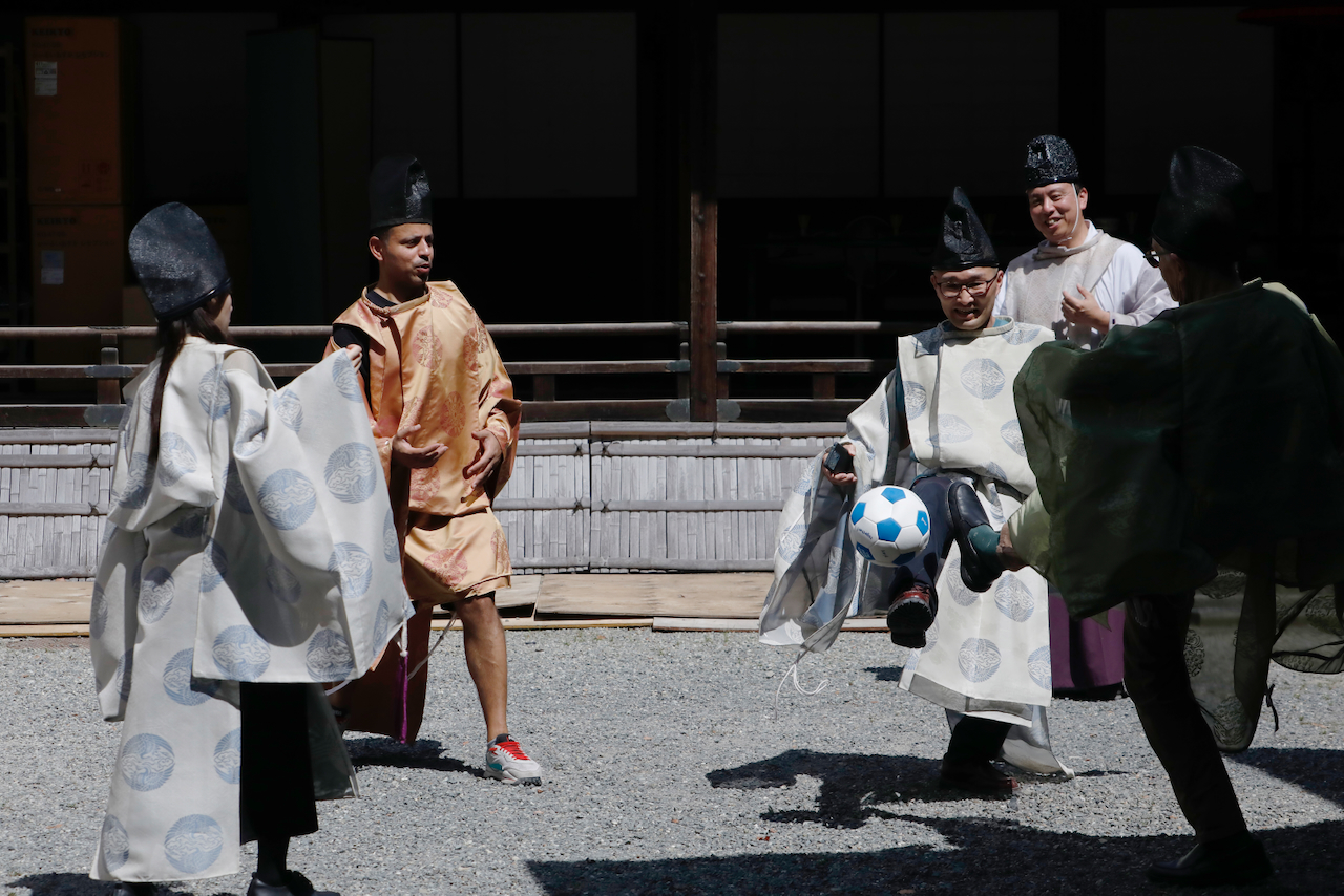 Following the kemari game, you will be guided by the shrine priests through the traditional process of folding the kariginu attire, completing the full ritual of preparation and participation. This final step allows you to appreciate the care and respect given to these ceremonial garments.