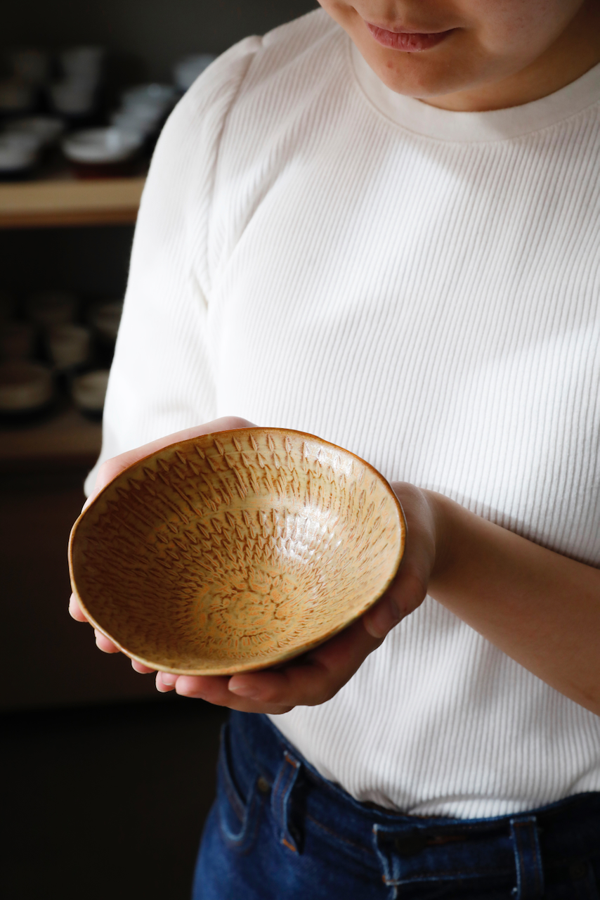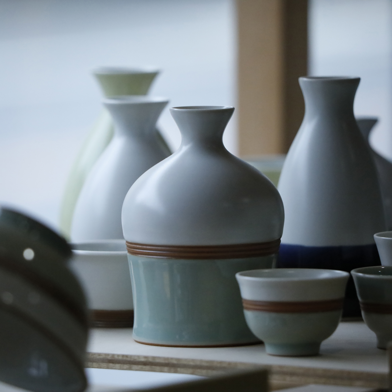 The unique style of the Soryu Pottery was born from the marriage of the fourth generation of Wakunami Soryu, to his wife, a potter from Koishiwara-yaki in Fukuoka, and from the combination of two techniques from different potteries in different areas. Koishiwara-yaki is from Tobu-mura, Asakura-gun, Fukuoka Prefecture, and mainly produces daily-used potteries. The pottery is characterised by a unique geometric pattern expressed by brushwork, Tobikanna, uchikake and kushikaki. The brand 'Soryu Pottery' was only possible because of the two of them, and the couple work on the pottery wheel every day to pursue new expressions of celadon and create pottery loved by many people.