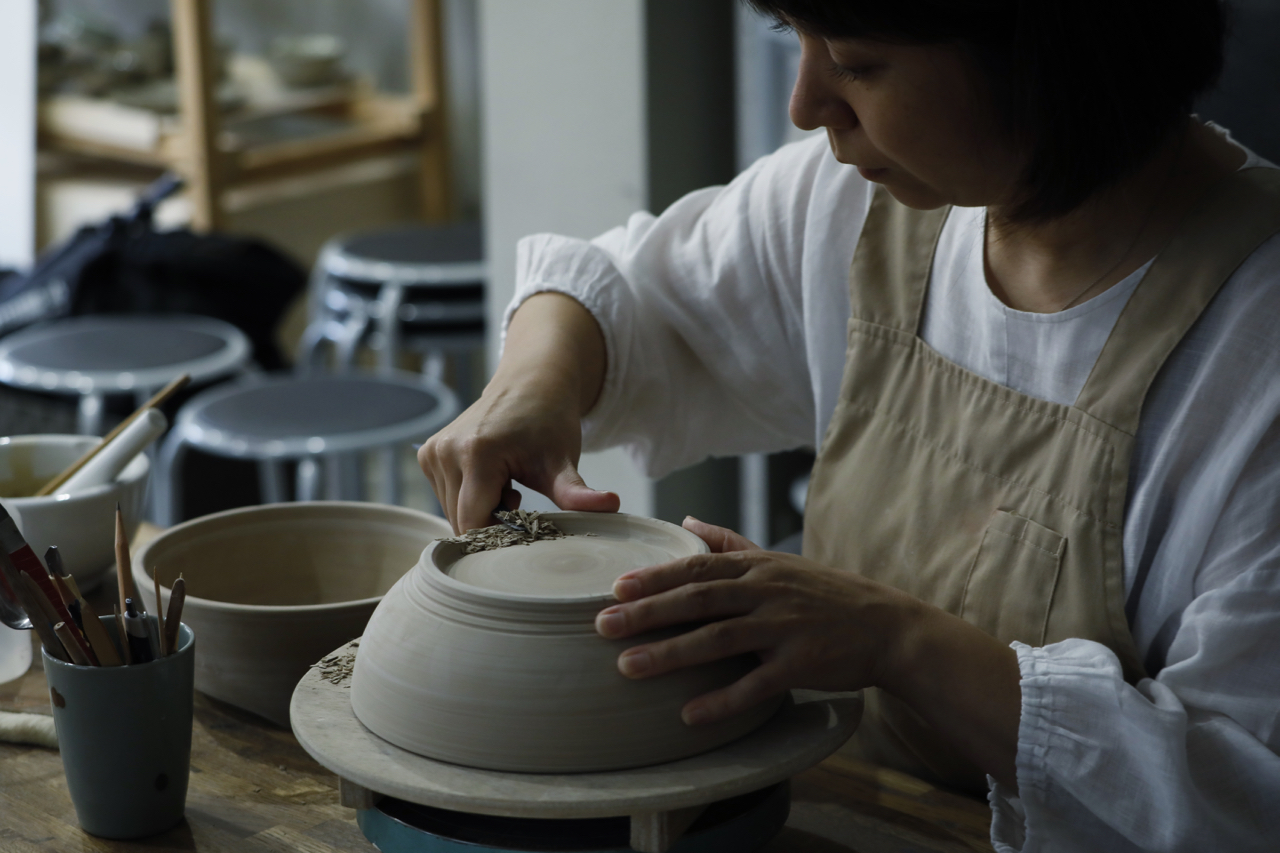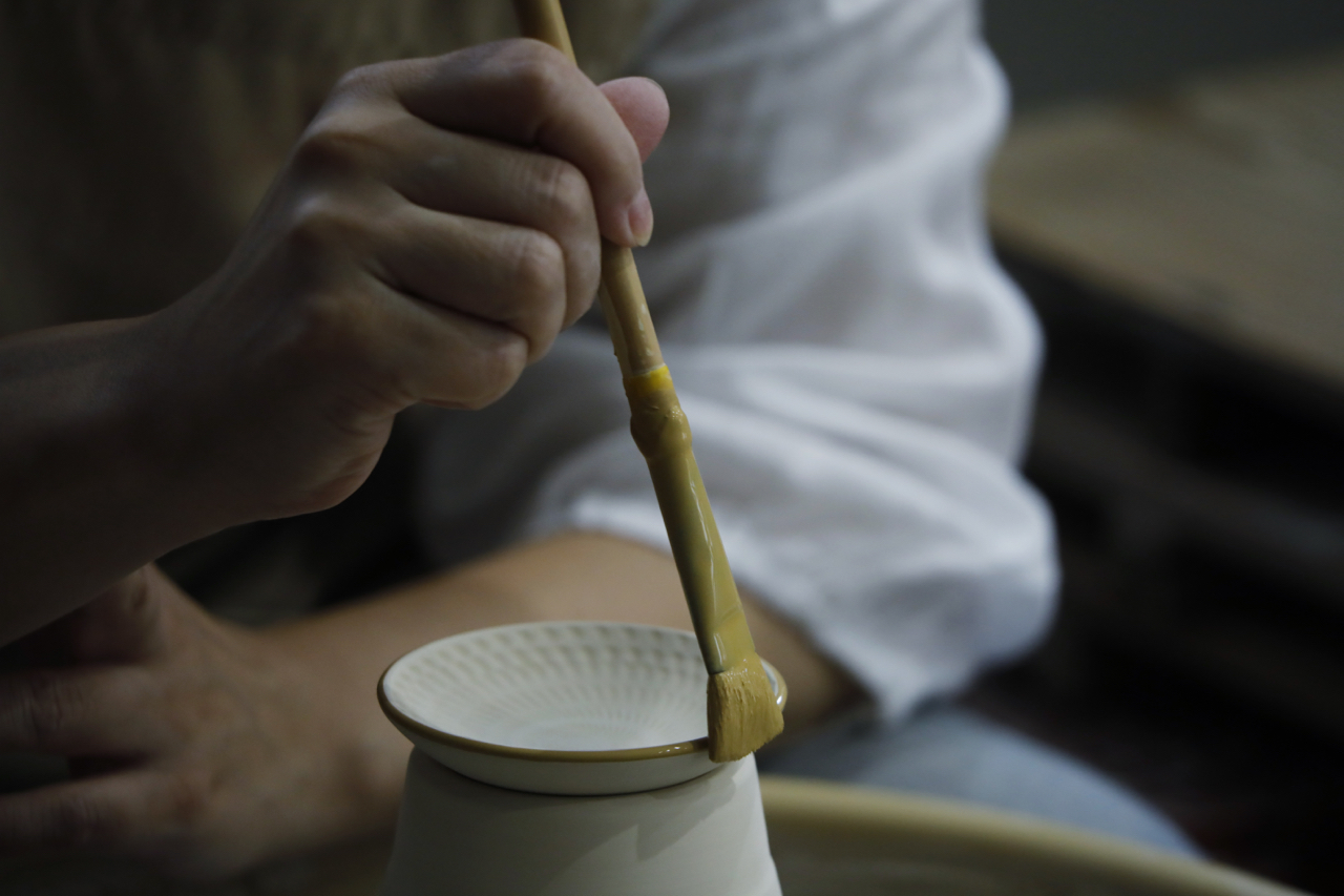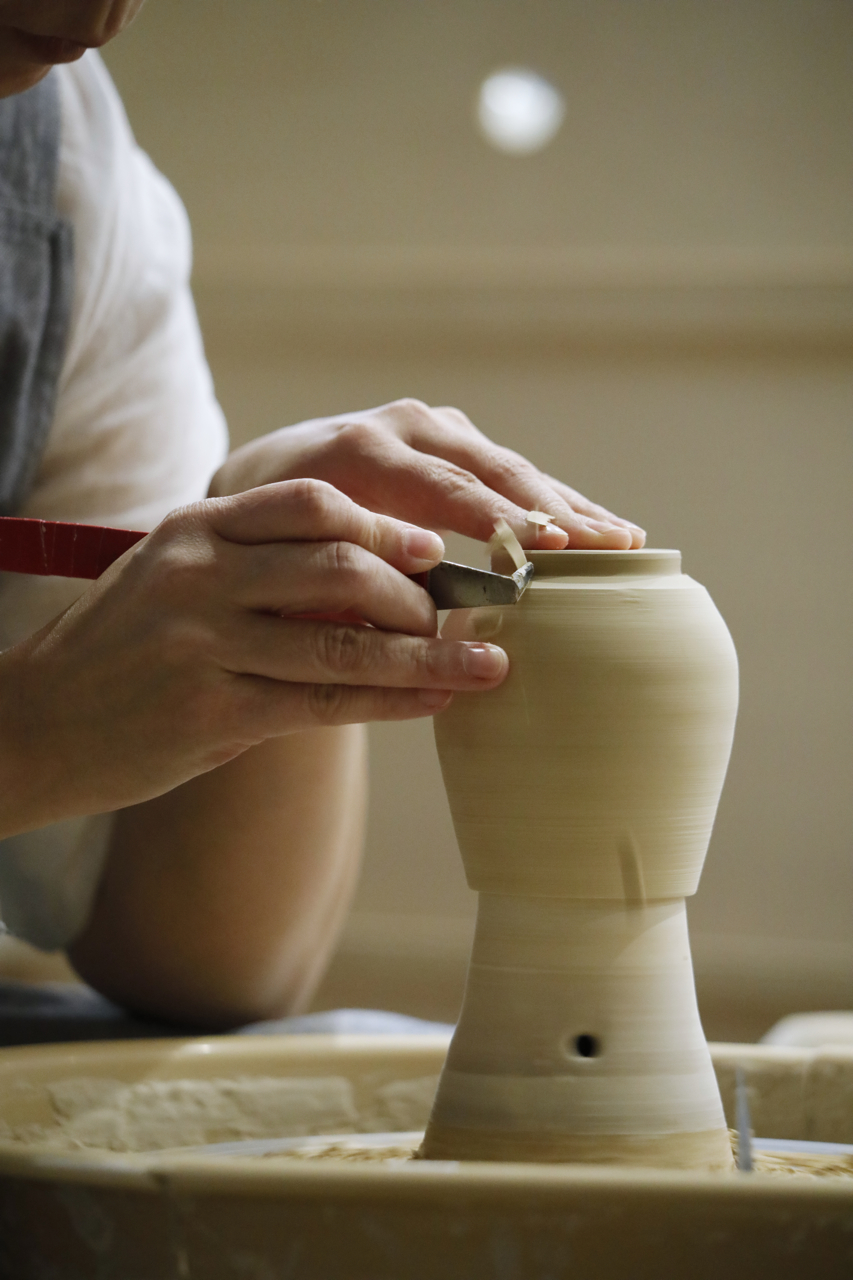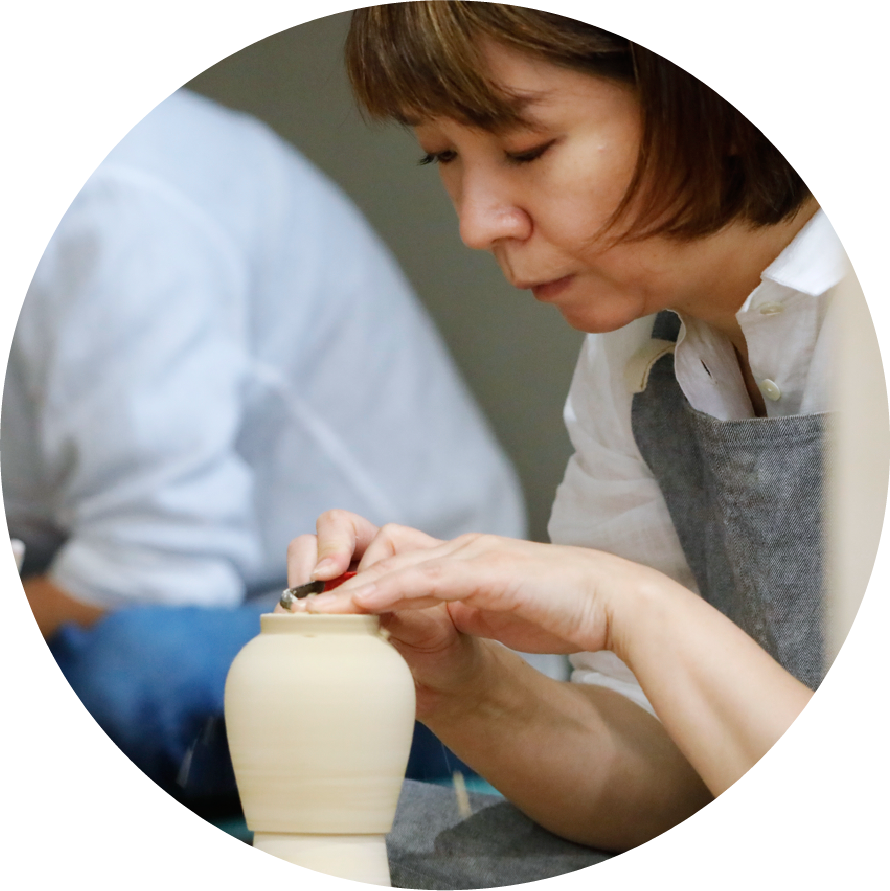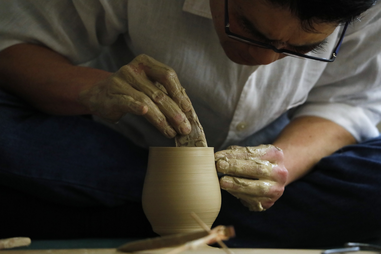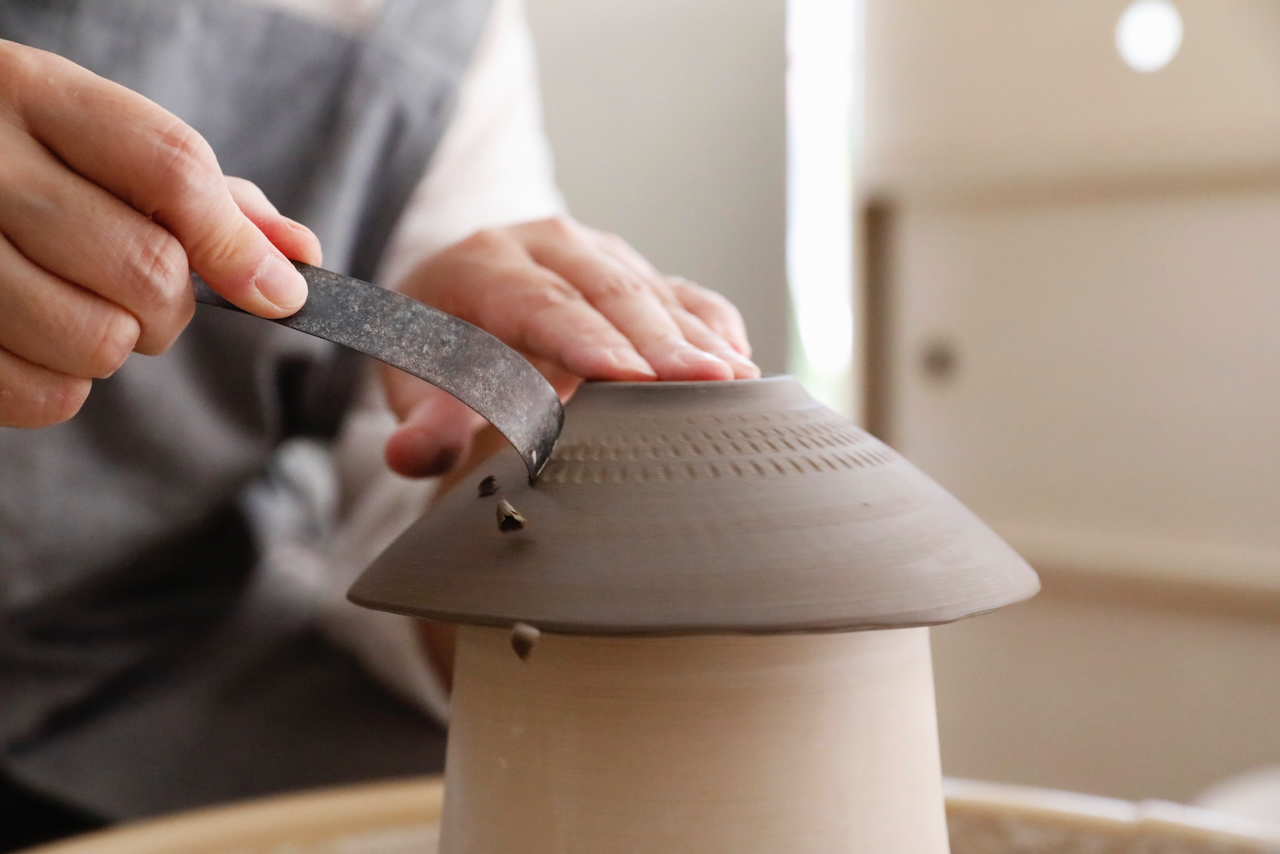 The gallery, which is spread out just inside the workshop, is lined with works such as a signature piece, the Seiji Tobi Kanna, as well as other pieces and ceramic jewellery. In the production workshop you can watch pottery being made in front of your eyes, where processes other than kiln firing are carried out, such as rokuro shaping and glazing. In this experience, you can watch a demonstration of the entire production process, from grinding out the vessel on the potter's wheel to the 'tobikanna' technique, and then make the pottery under the direct guidance from the craftspeople. (To complete the work by yourself, you will experience the work by hand rather than on the wheel). One of the potteries produced by you will be fired later with a pattern made using the tobikanna technique by the craftsperson, so that the you and the craftsperson can collaborate to produce a unique pottery in the world.
