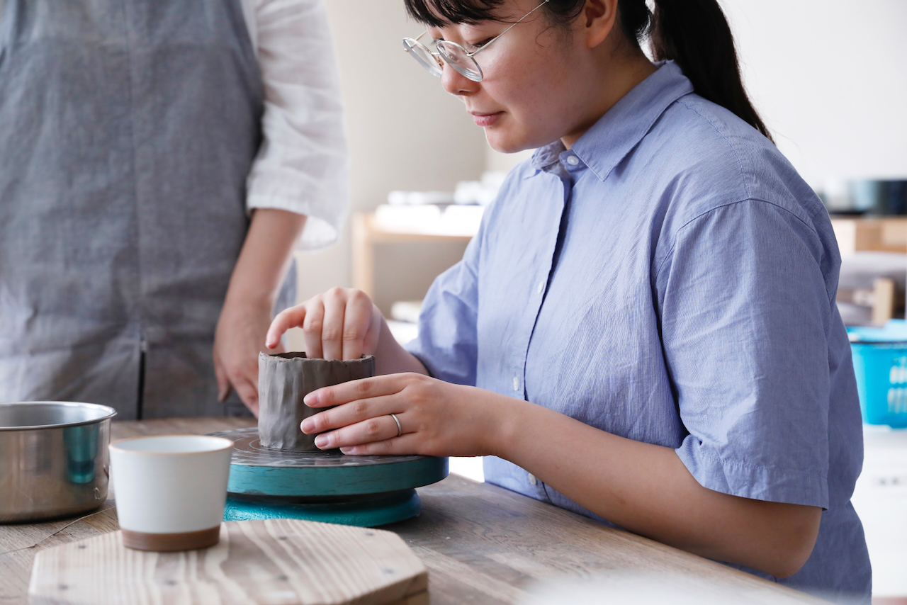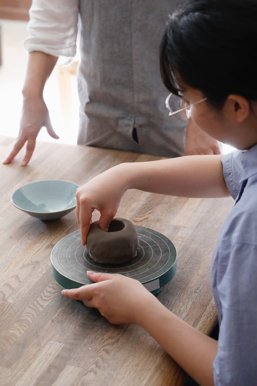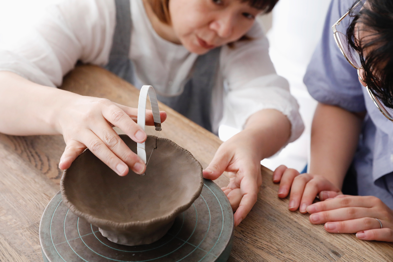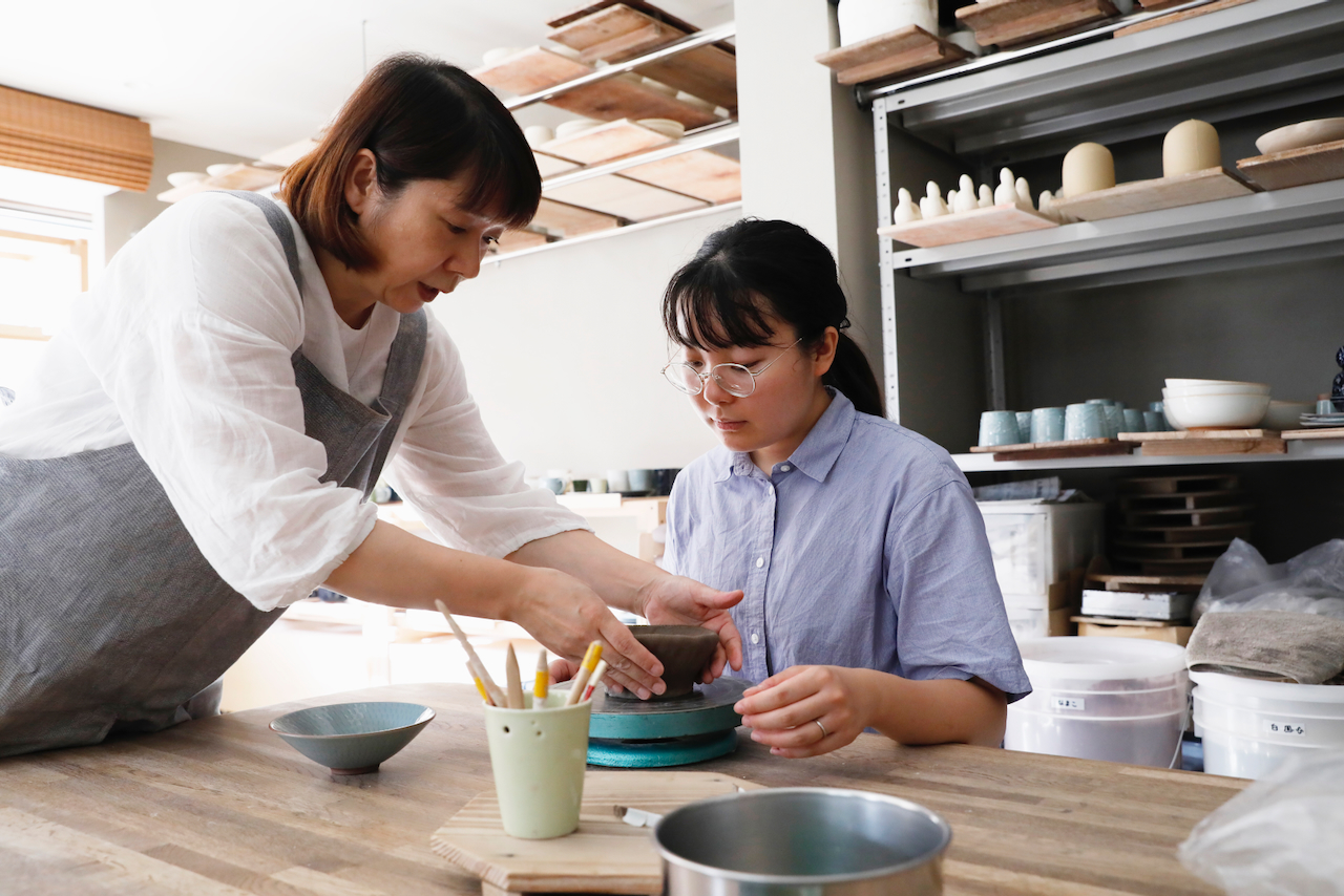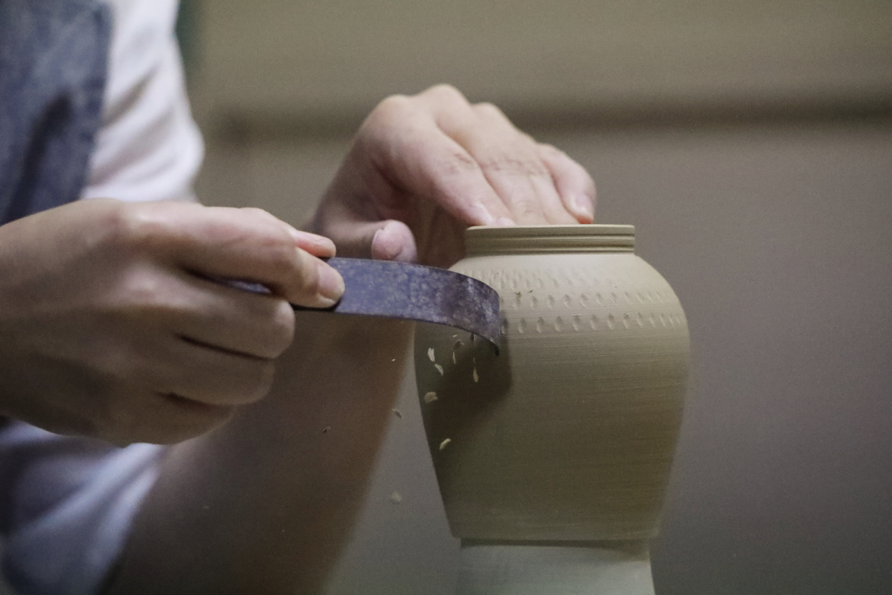 The gallery, which is spread out just inside the workshop, is lined with works such as a signature piece, the Seiji Tobi Kanna, as well as other pieces and ceramic jewellery. In the production workshop you can watch pottery being made in front of your eyes, where processes other than kiln firing are carried out, such as rokuro shaping and glazing. In this experience, you can watch a demonstration of the entire production process, from grinding out the vessel on the potter's wheel to the 'tobikanna' technique, and then make the pottery under the direct guidance from the craftspeople. (To complete the work by yourself, you will experience the work by hand rather than on the wheel). One of the potteries produced by you will be fired later with a pattern made using the tobikanna technique by the craftsperson, so that the you and the craftsperson can collaborate to produce a unique pottery in the world.