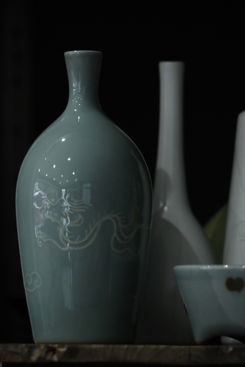 Celadon made at Soryu pottery is produced using a technique called "kneading celadon", in which pigments are mixed into the pottery clay. Compared to ordinary celadon, there are many more processes involved in the production, which take a lot of work and time. This process is essential for the creation of the blue with a unique and distinctive depth.
