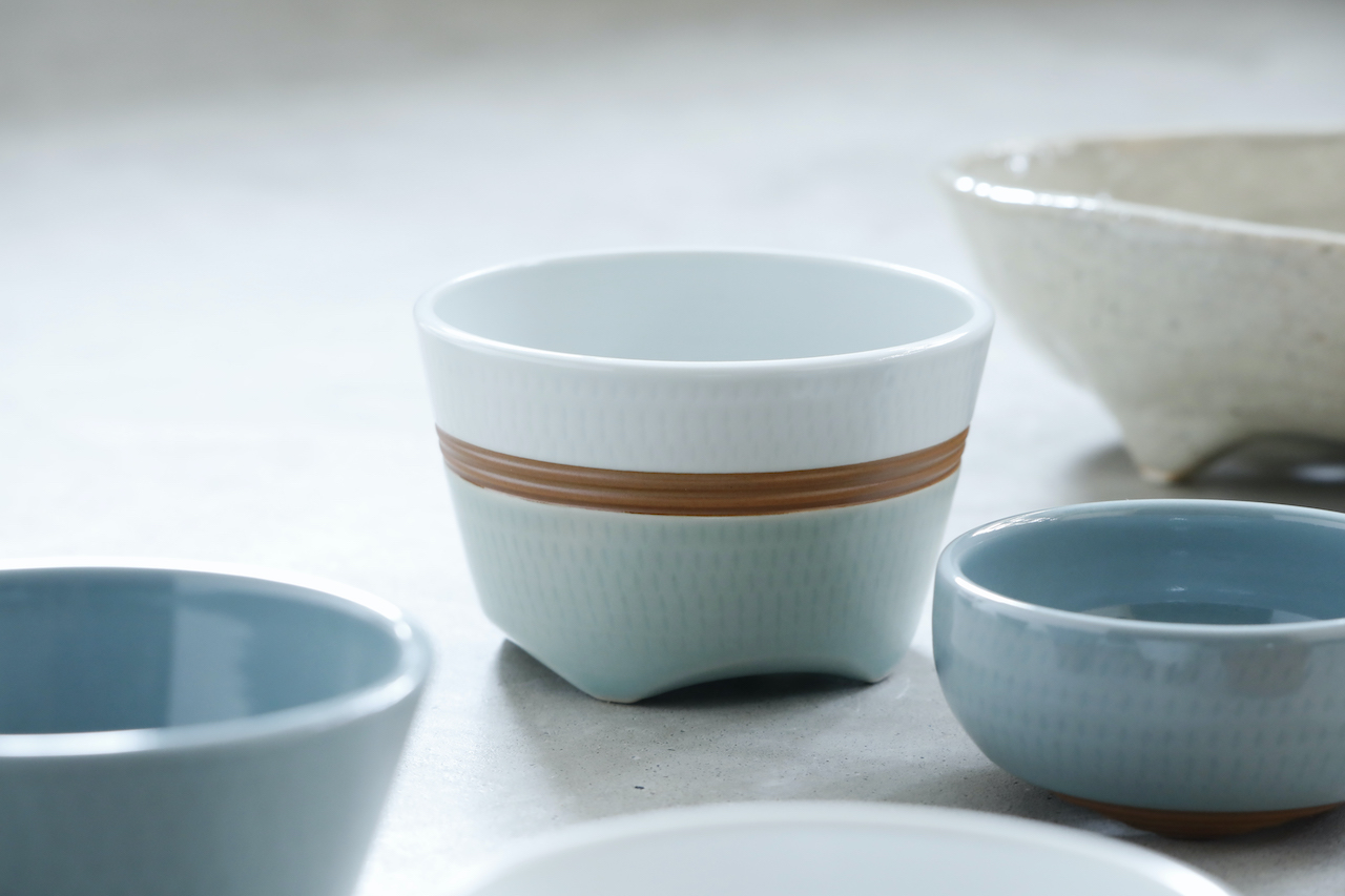 Soryu Pottery is a pottery production company that combines the traditional techniques of Kiyomizu-yaki from Kyoto and Koishiwara-yaki from Fukuoka and is made by a couple of craftspeople who have carried on their each traditional skills. A Kiyomizu-yaki craftsperson and a Koishiwara-yaki craftsperson became a married couple and combined their skills to create "Seiji Tobikanna," one of the representative works of Soryu Pottery. The beautiful celadon carried on from the first generation is decorated with the traditional Koishiwara-yaki technique of "Tobikanna", which combines elegance and warmth.