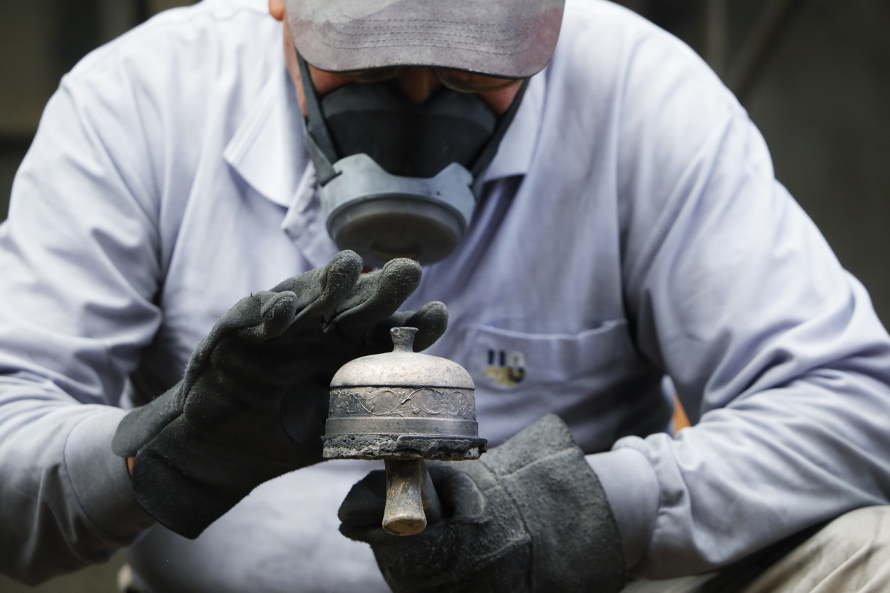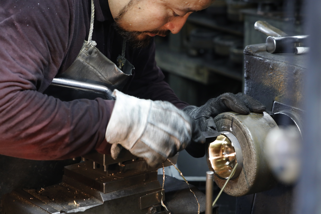 The orin, a Buddhist instrument producing a clear and unclouded bell-like sound. Nanjo Studio is one of the few workshops in Japan specializing in the production of orin, gongs and other ritual instruments (e.g. musical gongs for the Japanese traditional festival or Japanese court music) used in shrines, temples and homes.