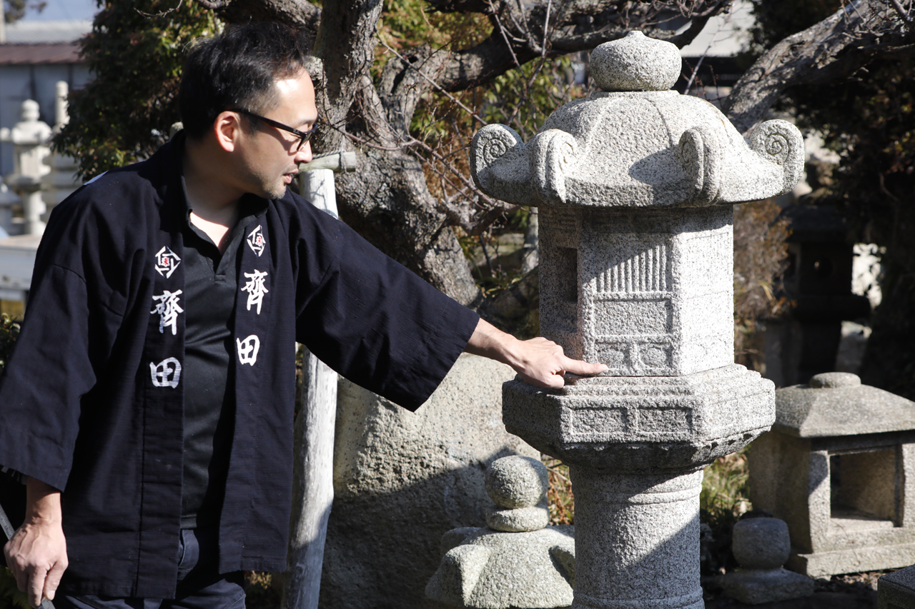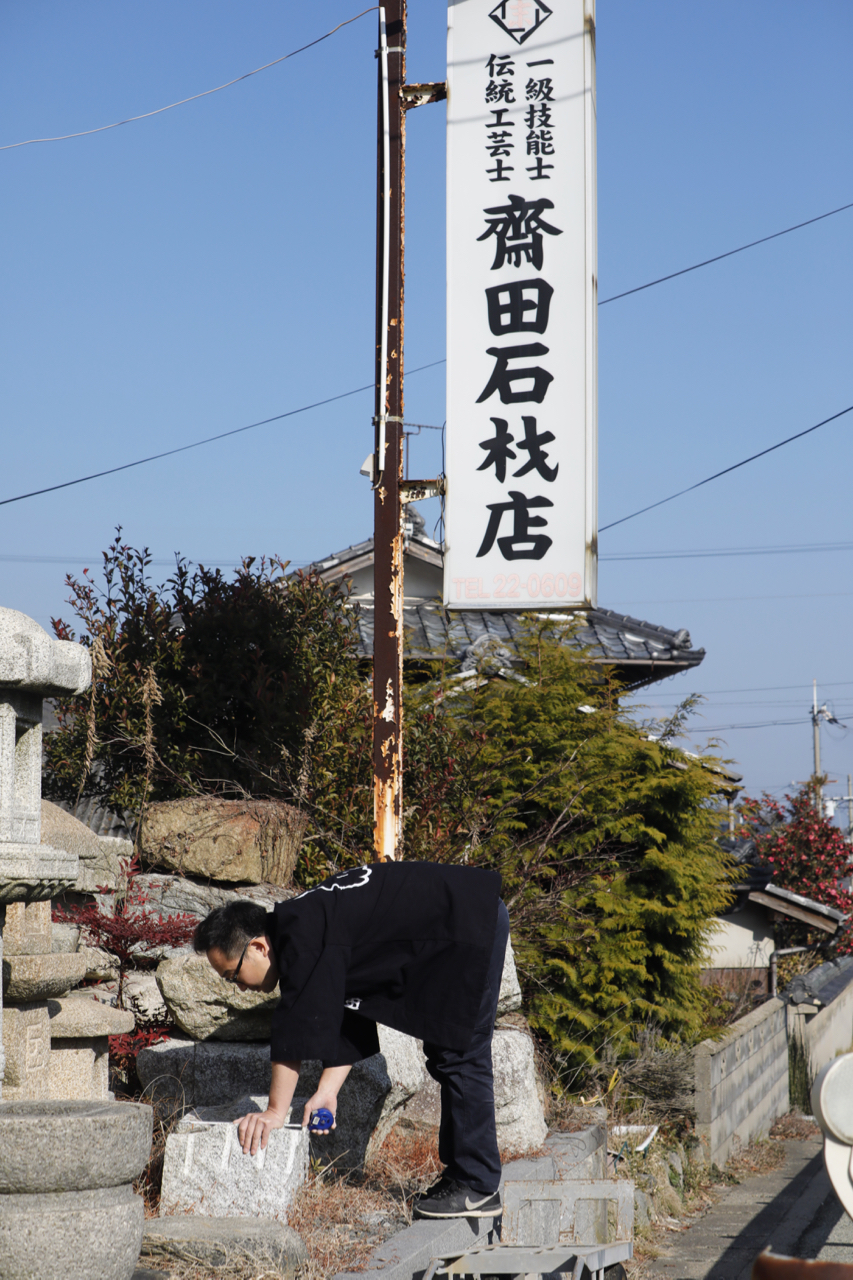 Saida Stone Shop also continues to take on various challenges to expand the possibilities of stone crafts. In addition to traditional Kyoto stone crafts, Saida is also working with overseas artists and designers to produce stone lanterns with new designs.In recent years, Saida has exhibited and demonstrated the production of stone lanterns in the USA and Italy, actively expanding its field of activity.