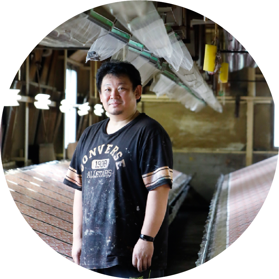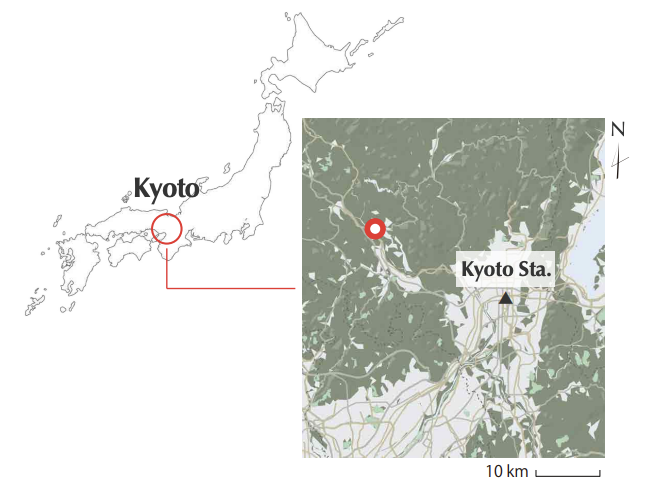 Maruyama Senko, which produces Kyo-yuzen washi paper, is located near the Oigawa River (Katsura River), which flows through a mountain basin stretching into Yagi, Nantan City. It is a wonderful location with a typical Japanese landscape of vast rice paddies in front of it and the Saburogatake mountain range beyond.